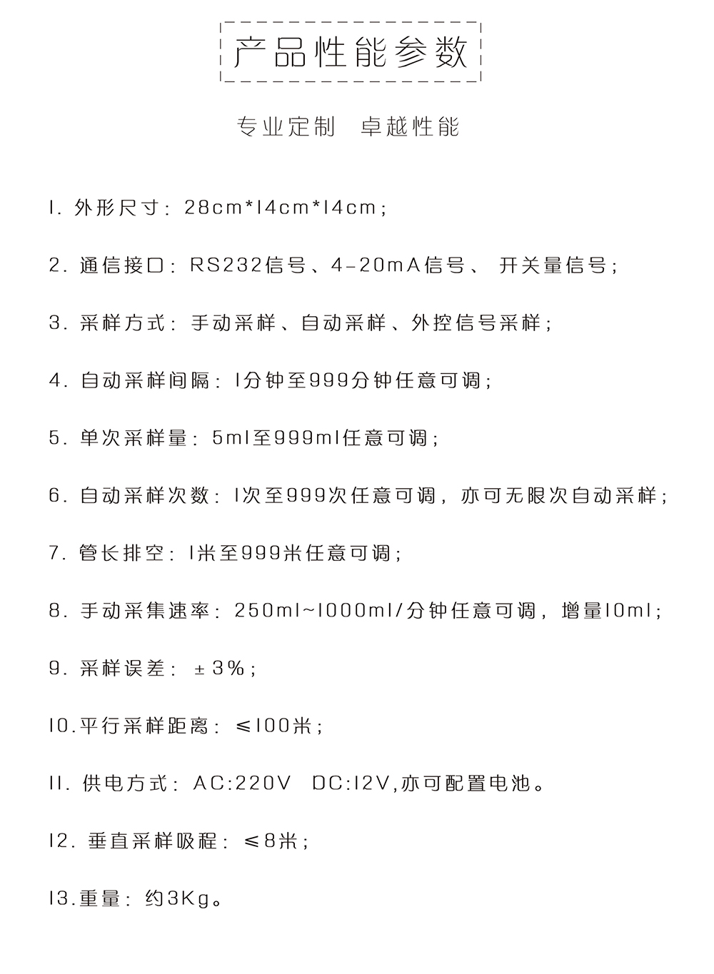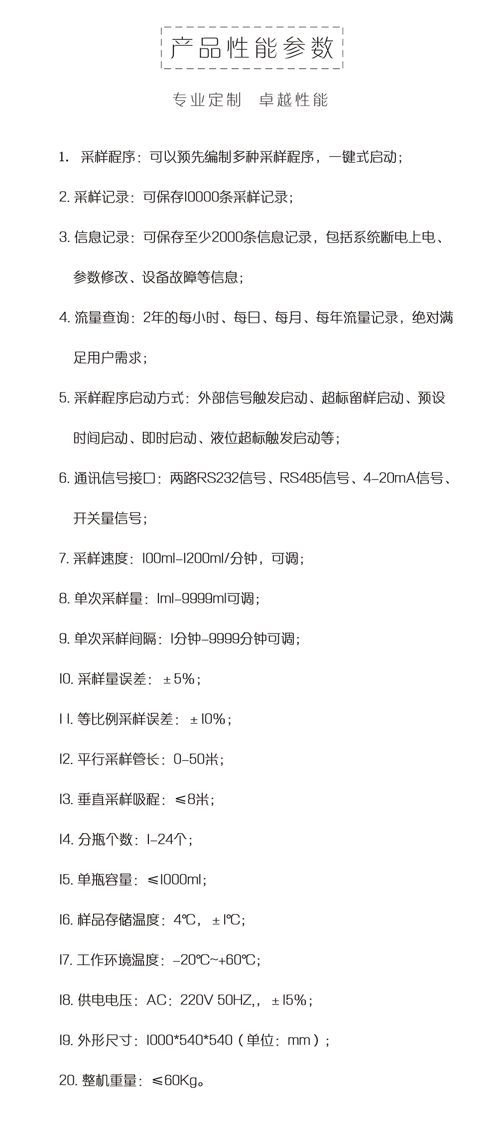 儀器采用可靠蠕動泵,混合式步進機驅動,滿足各類環境條件下的水質采樣。適用于各*環境監測站、污水處理廠、水利、水務及科研院所,對工業污水排放口、江、河、湖、海等水樣的采集。