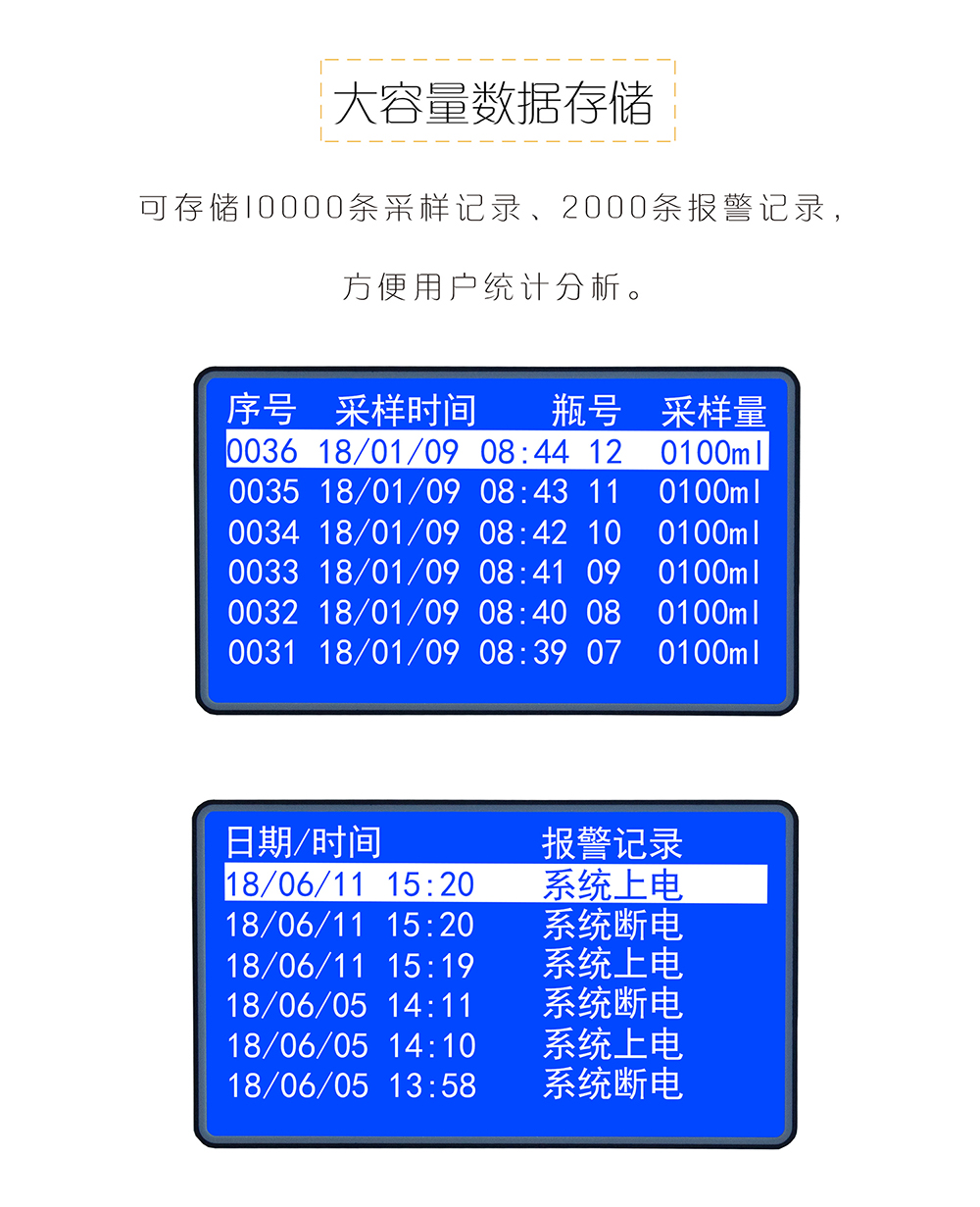 1.多種采樣程序啟動方式:預設時間啟動、外部信號觸發啟動、超標留樣啟動、即時啟動、液位超標觸發啟動等,滿足用戶的各種應用。