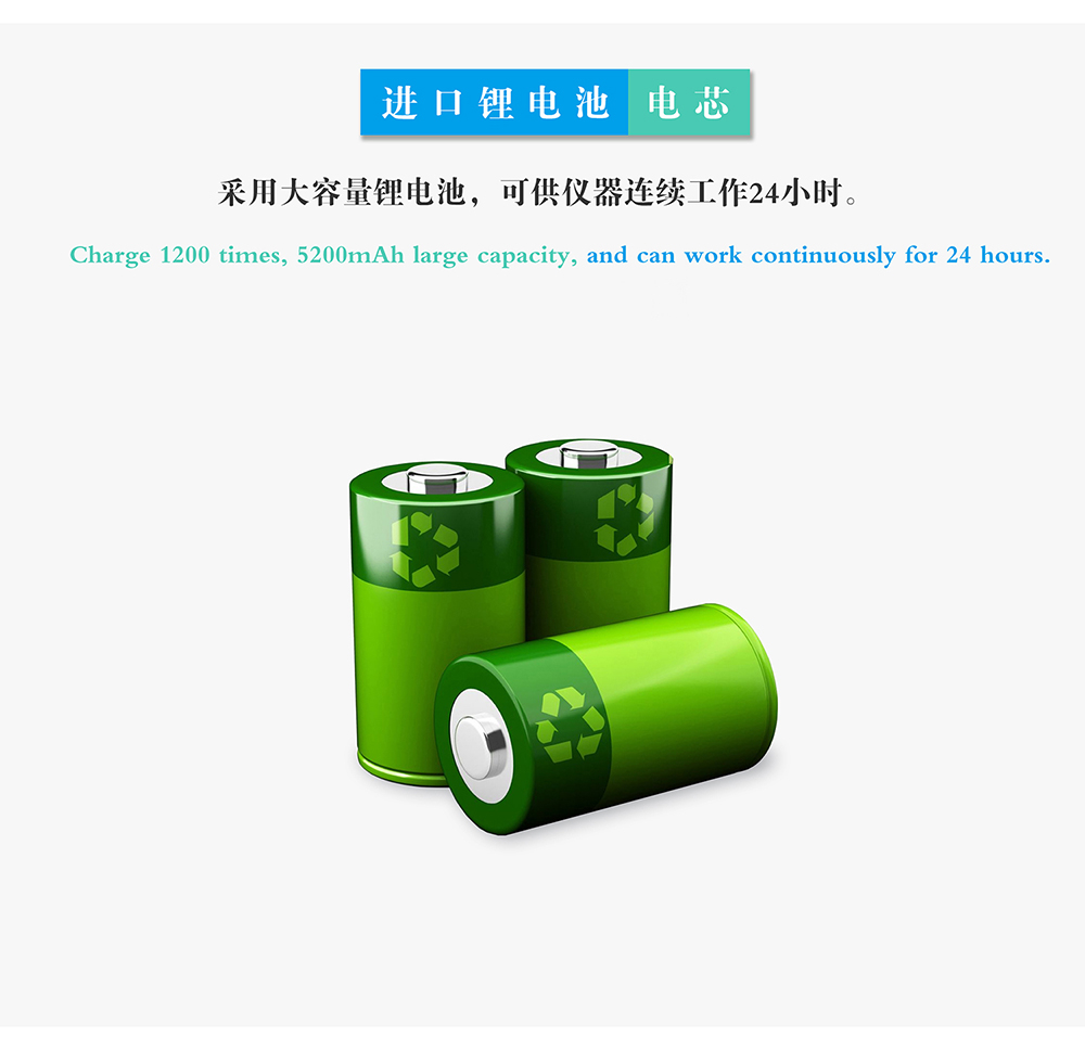 10.工作電源:內(nèi)置電池,交直流兩用;鋰電池電芯,可連續(xù)測(cè)量12小時(shí);