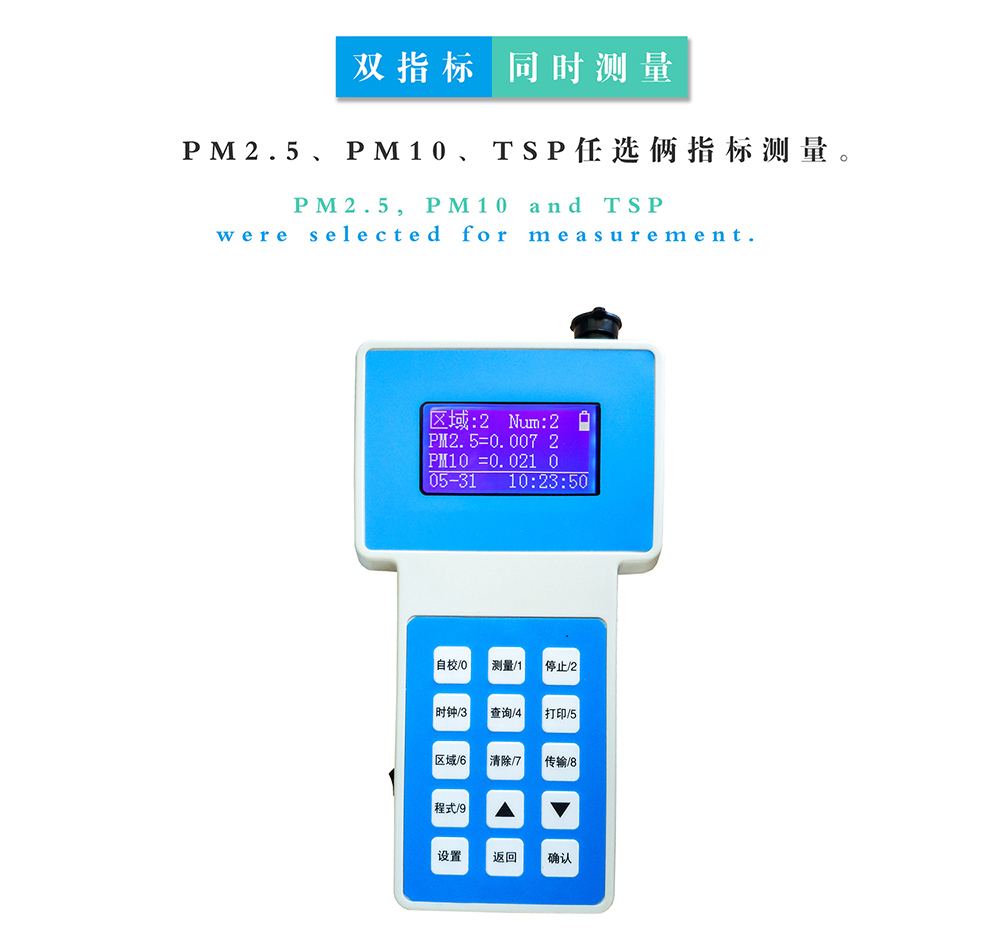 2.測(cè)量范圍:TSP:0.001~60mg/m3,pm10:0.001~20mg/m3,pm2.5:0.001~10mg/m3;