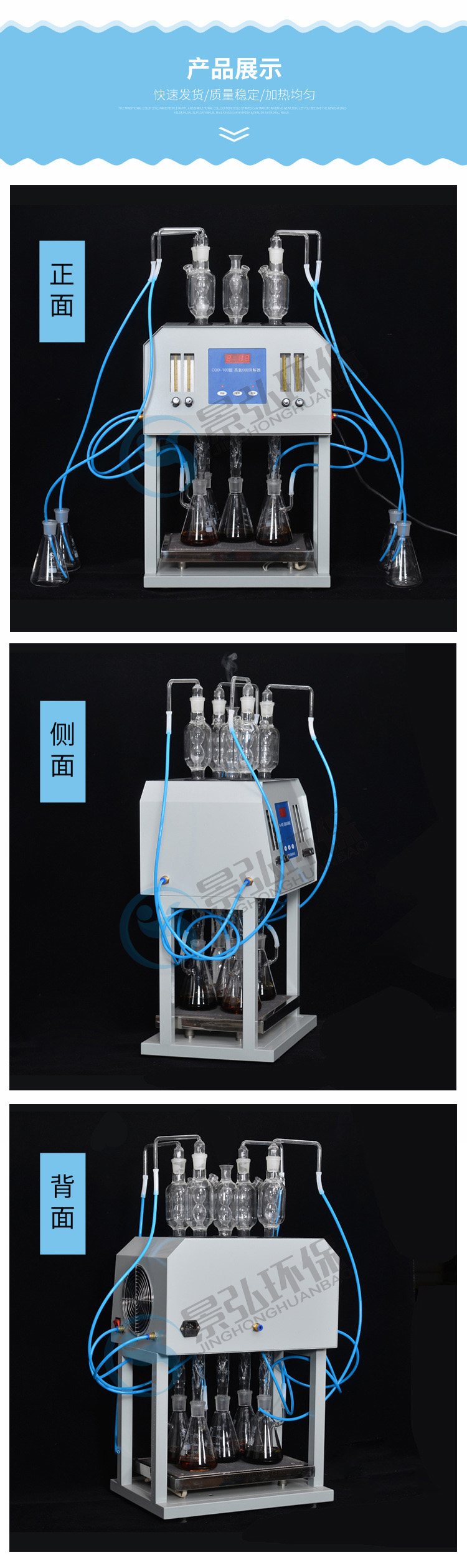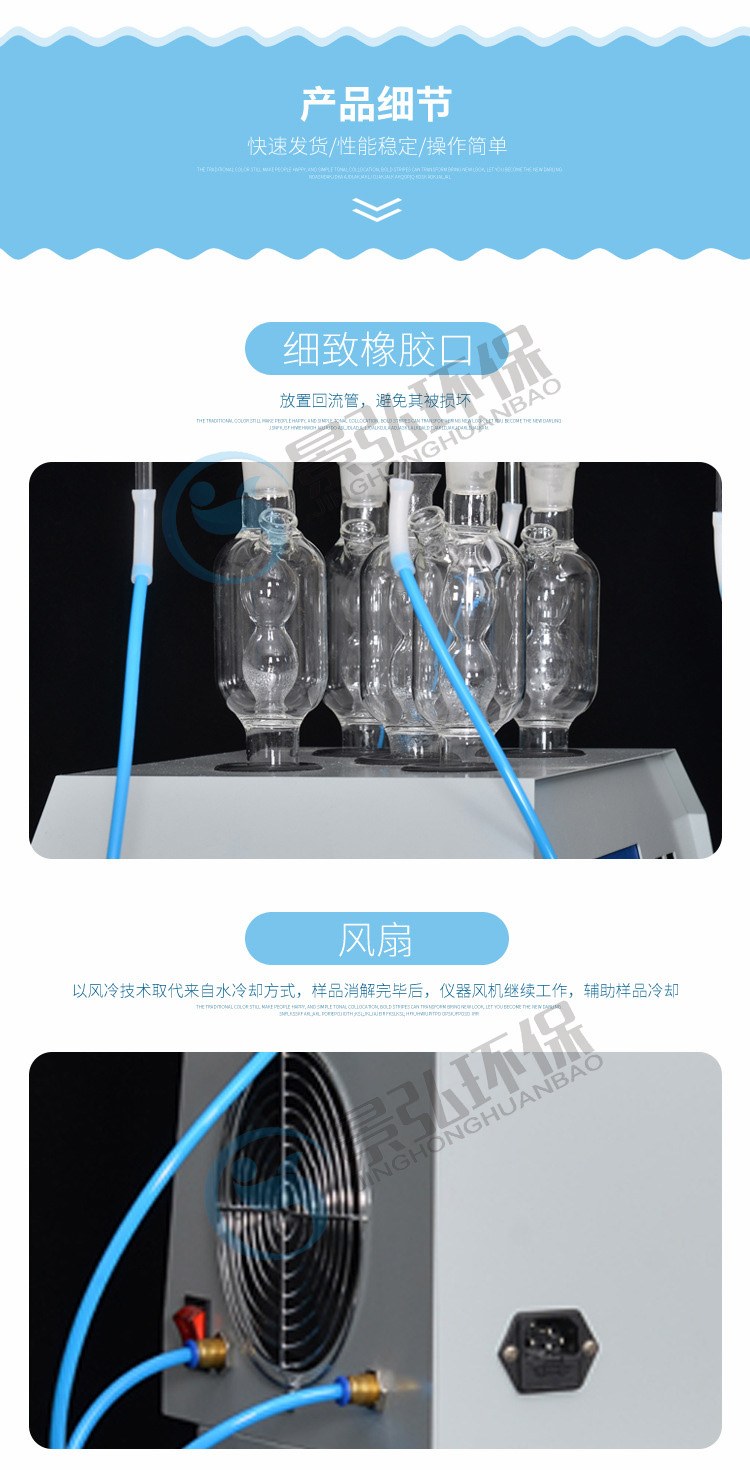 2、采用玻璃毛刺回流管代替球形回流管,并以風(fēng)冷技術(shù)取代自來水冷卻方式,既可以節(jié)水又能使儀器規(guī)范化,同時還提高了儀器使用的安全性。