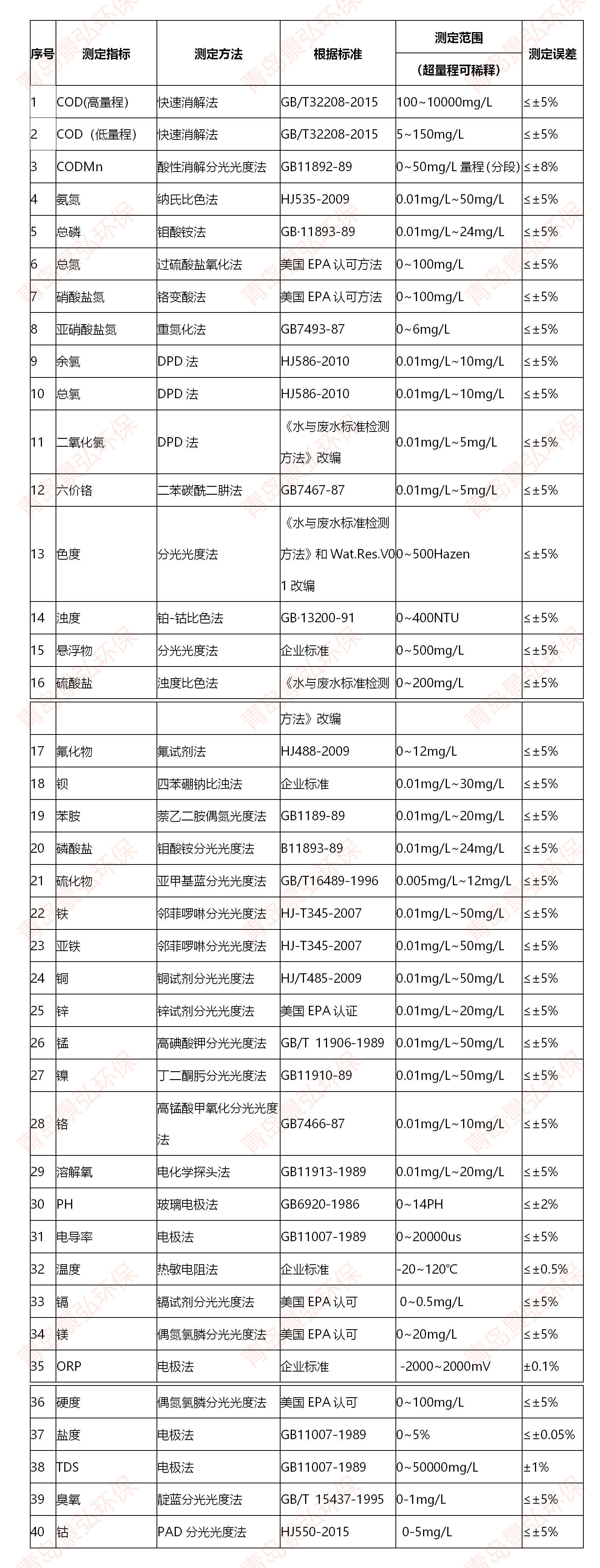 7.抗氯干擾:[CL-] <1000mg/ L,(>1000mg/ L時稀釋測定);