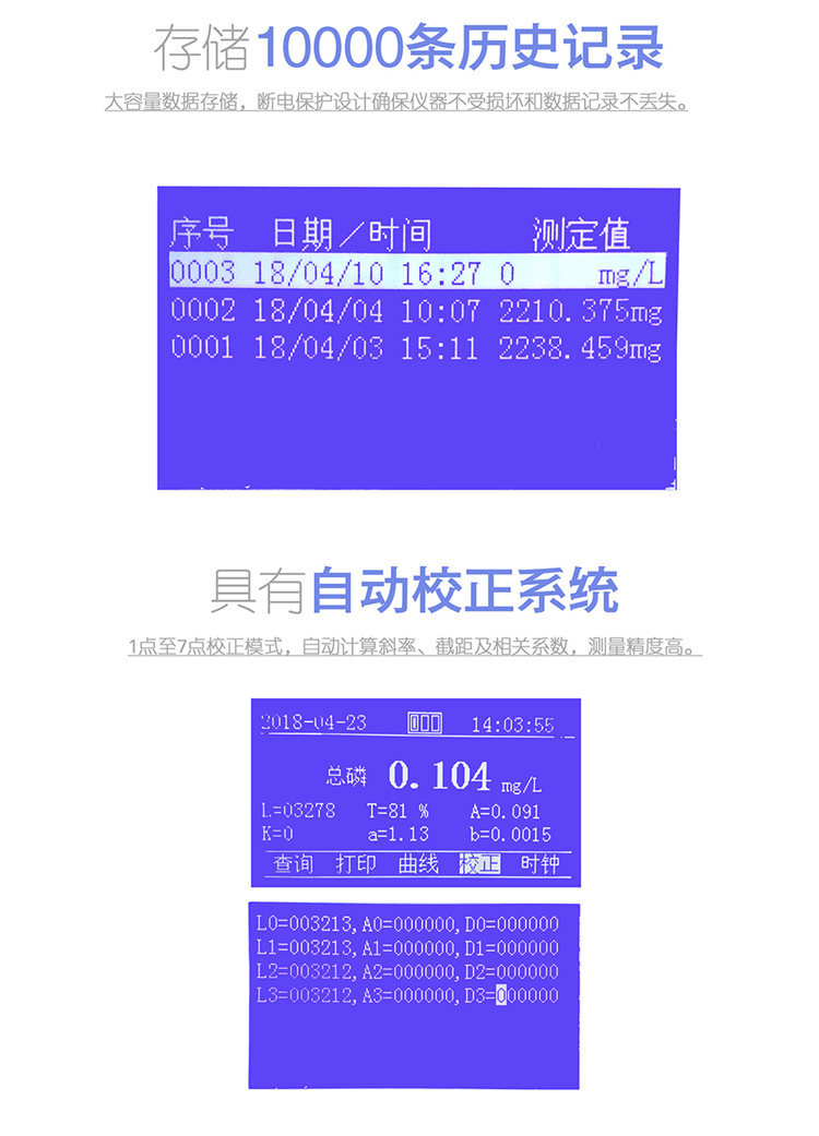 5.1點至7點校正模式,自動計算斜率、截距及相關系數,測量精度高。