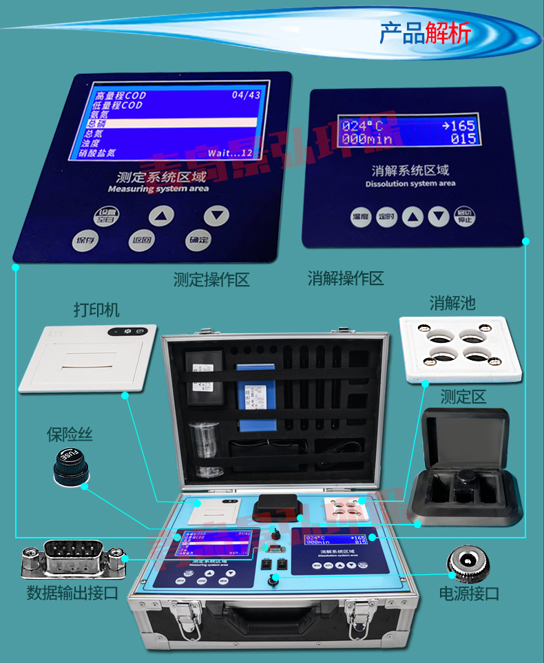 6.儀器內置直流電源,鋰電池供電,可實現多批水樣加熱消解及比色測定;