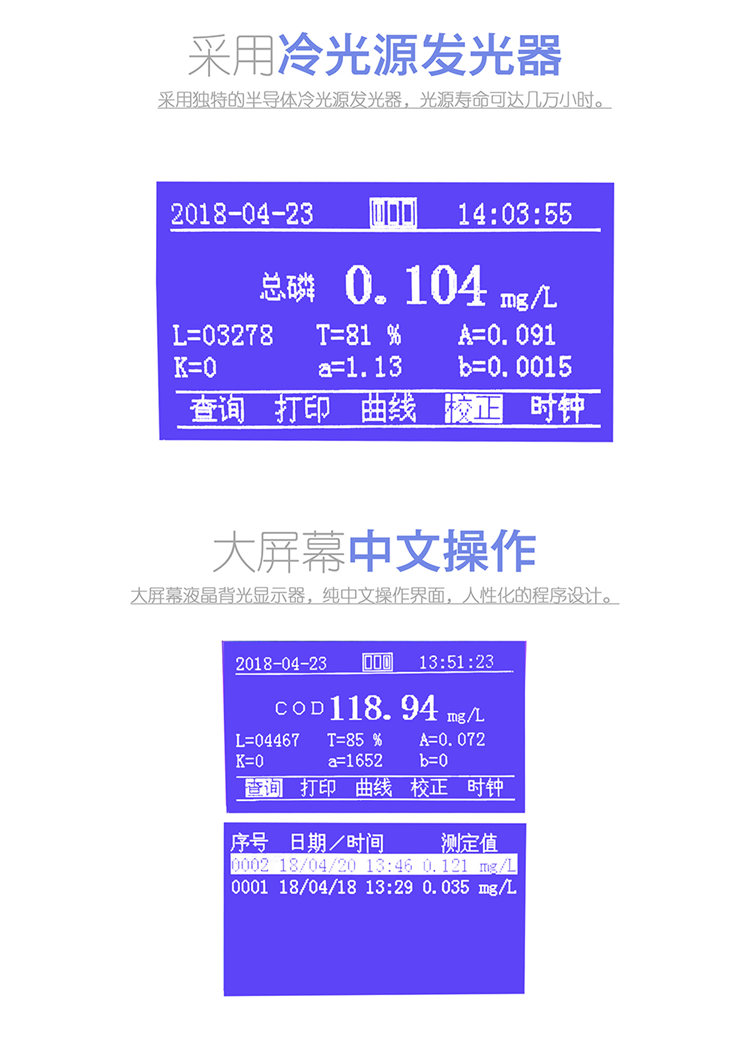 ② COD高低量程雙波長(zhǎng)測(cè)定:5~150mg/L低波長(zhǎng);100~10000mg/L,高波長(zhǎng);